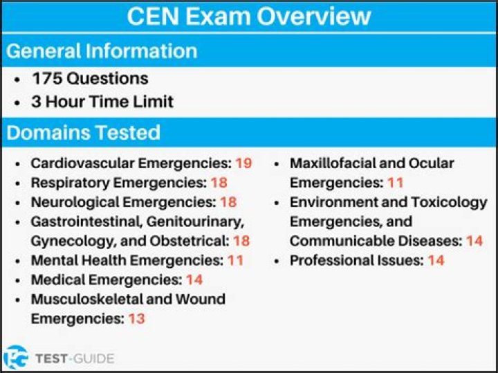 How many questions/items are on the exams? The CEN exam consists of 175 items (150 scored and 25 unscored pretest items).