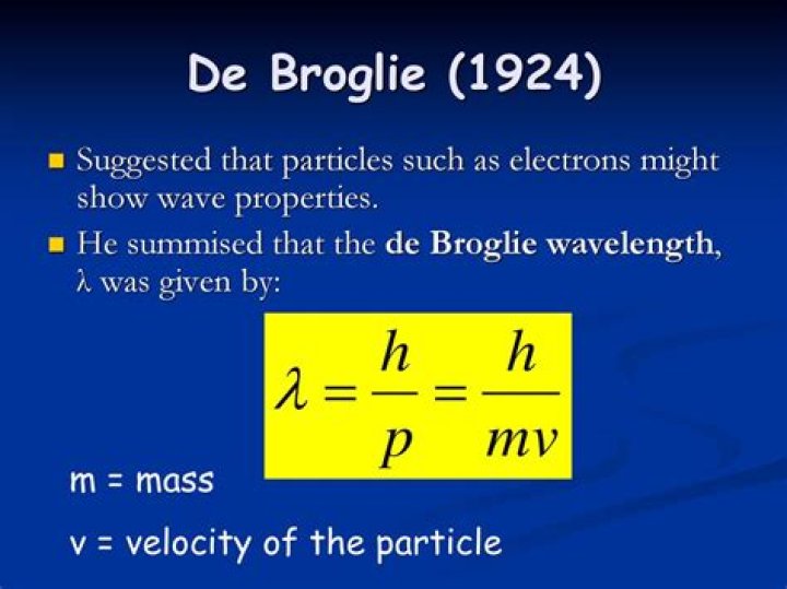 Louis de Broglie showed that the wavelength of a particle is equal to Planck’s constant divided by the mass times the velocity of the particle. The electron in Bohr’s circular orbits could thus be described as a standing wave, one that does not move through space.