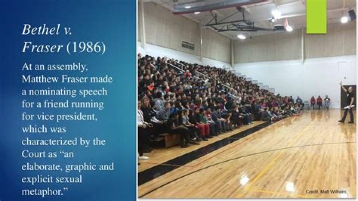 High school student Matthew Fraser was suspended from school in the Bethel School District in Washington for making a speech including sexual innuendo at a school assembly.